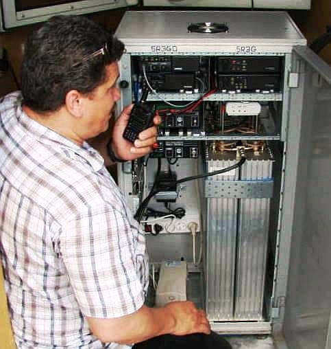 Marek SQ3VAT w czasie końcowego testowania przemienników